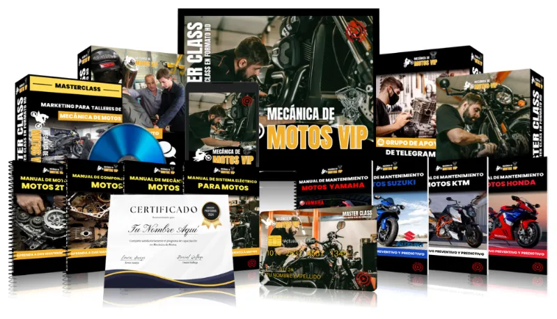 Cubre desde cero, paso a paso y en detalle, todo lo que necesitas saber para convertirte en un mecánico de motos profesional, montar tu taller y tener ingresos cuanto antes.